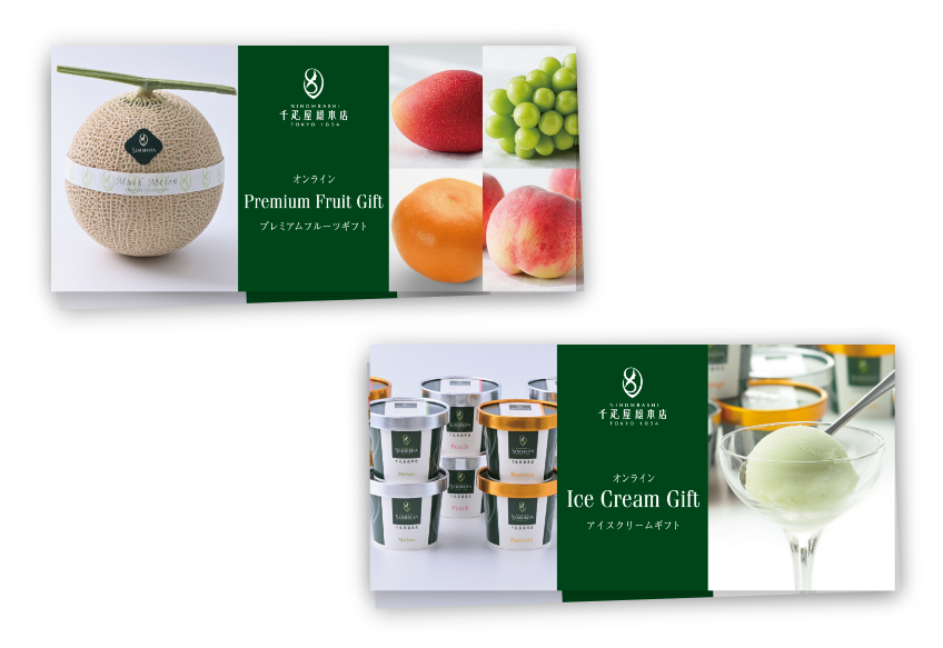 「オンラインプレミアムフルーツギフト」「オンラインアイスクリームギフト」は公式オンラインストアと日本橋本店でのみ販売している限定商品です。