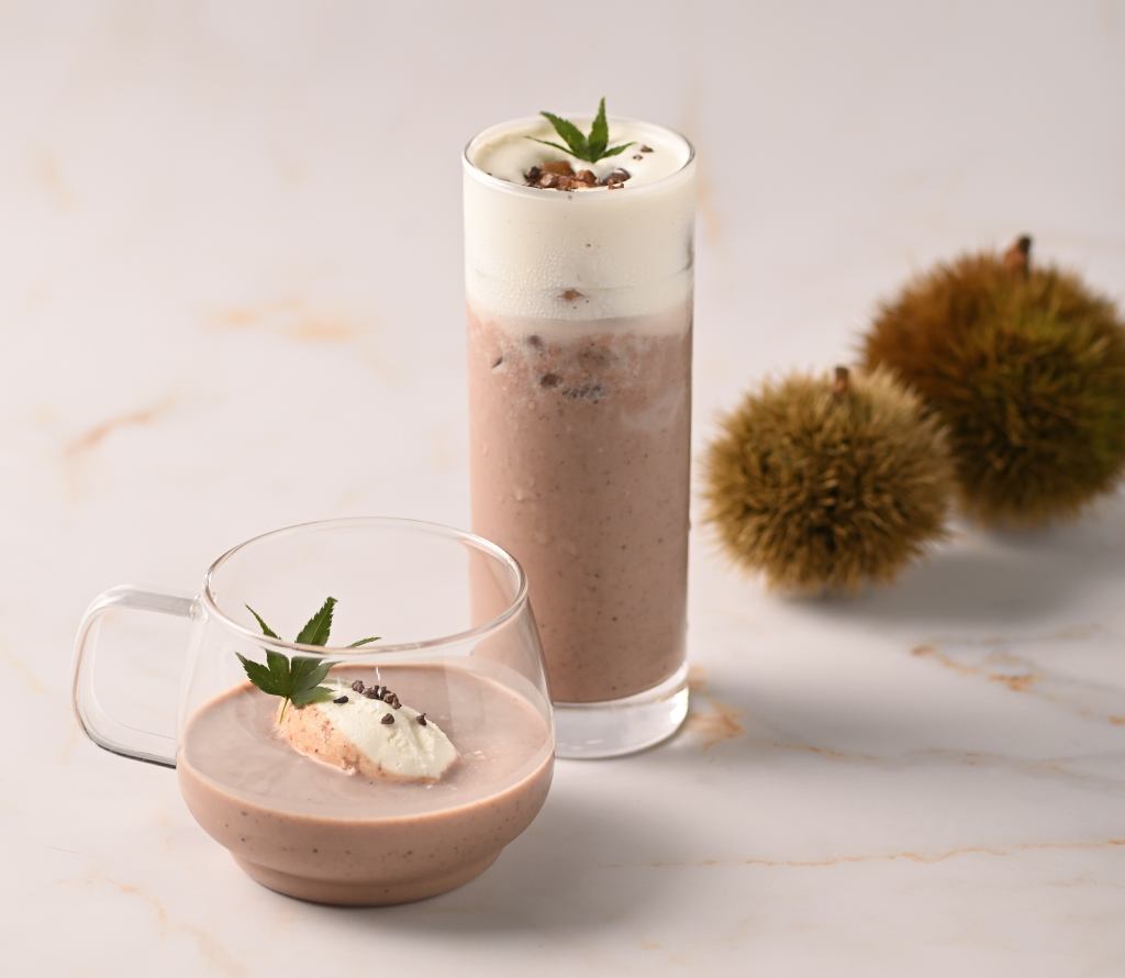 丁寧に裏ごしした和栗のペーストに薫り高いココアを合わせ、まろやかで深みのある味わいに仕上げました。栗のやさしい甘みとココアのビターなコクが溶け合い、ひと口ごとに秋のぬくもりを感じられる一杯です。
