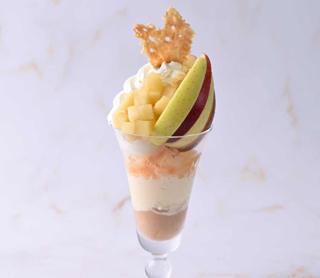生の国産りんごと生姜で仕立てた自家製ピューレと千疋屋オリジナルのりんごジュースで仕上げた秋限定のスペシャルドリンク。りんごの自然な甘みと生姜のピリッとしたアクセントが口いっぱいに広がり、秋のひとときを優しく彩ります。