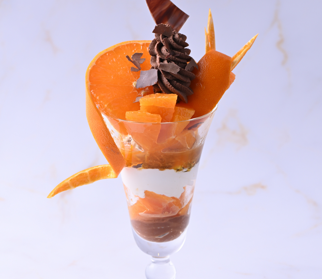 種が無いため、そのままお楽しみいただけます。パッションフルーツソースがアクセントの、爽やかなパフェをお召しあがりください。