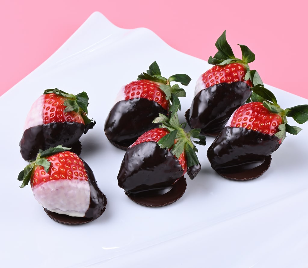 千疋屋総本店が自信をもっておすすめする苺「クイーンストロベリー」に、2色のチョコレートをコーティングしました。
